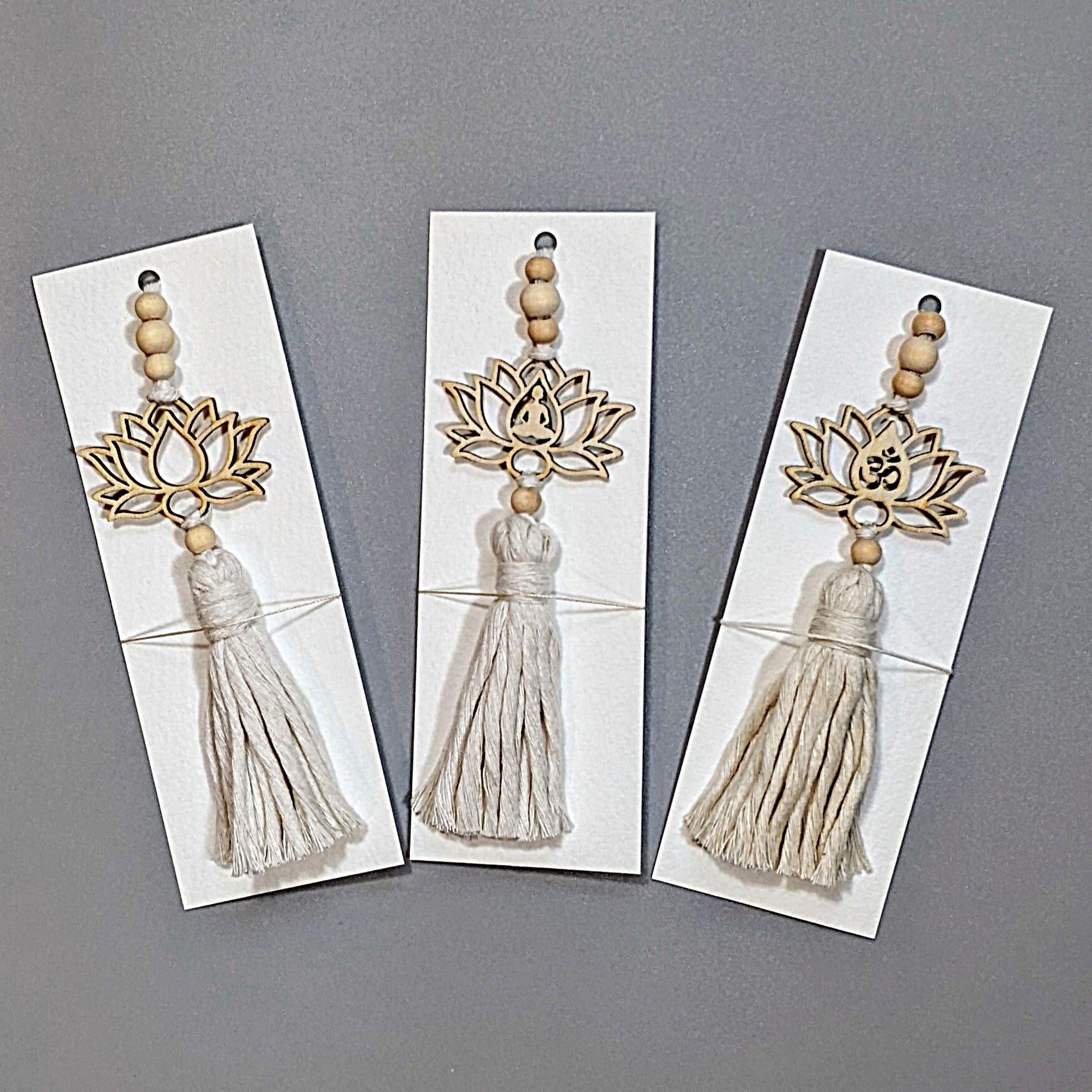 🌱 Materialien: Baumwollgarn, Holzlaserschnitt Lotosblume, Holzperlen