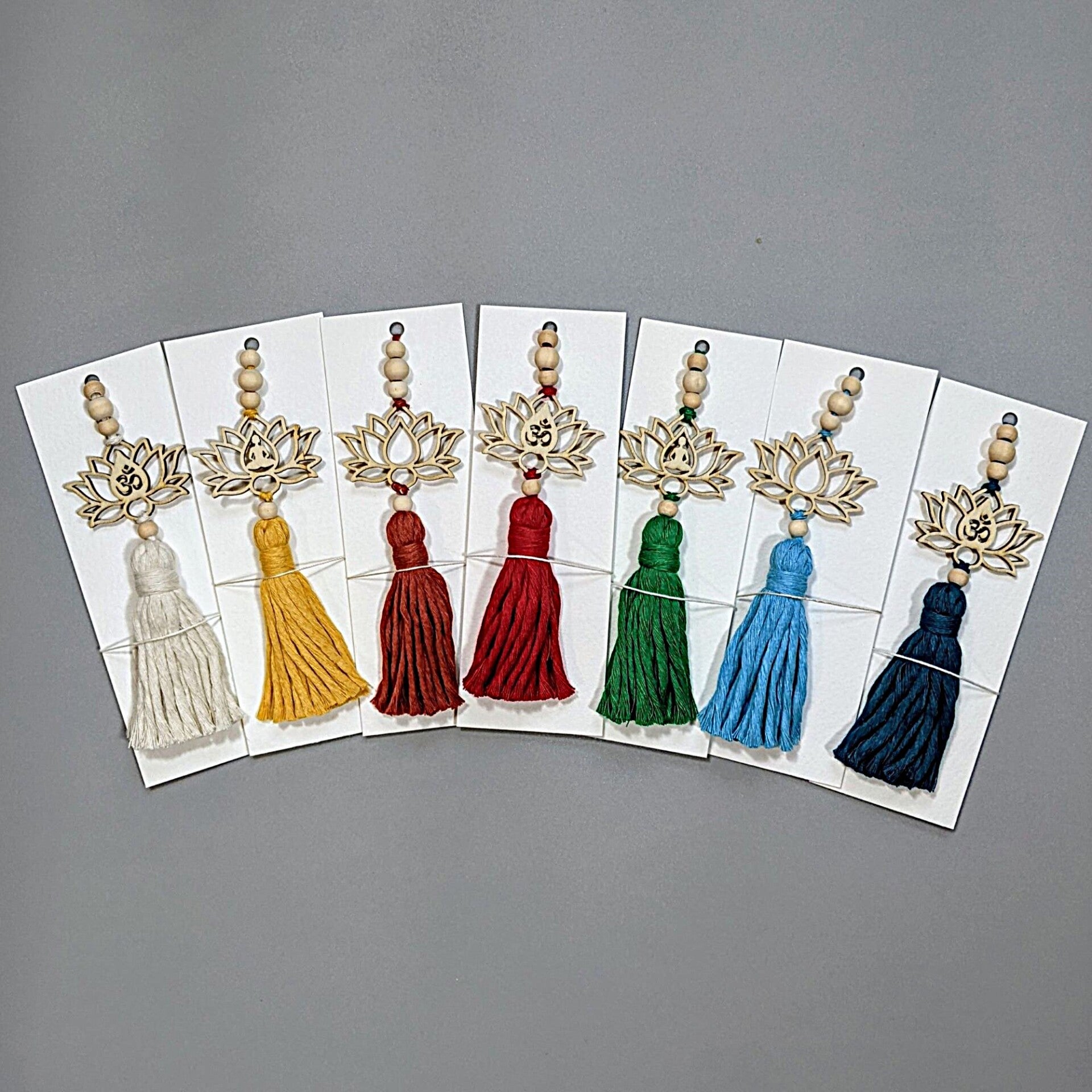 Jeder Lotosanhänger wird auf Bestellung liebevoll von Hand aus Baumwollgarn gefertigt und individuell für dich zusammengestellt. Du wählst aus sieben Farben deine Wunschfarbe. Die filigrane Lotusblume aus Holzlaserschnitt ist in drei Varianten erhältlich: Yoga, Om oder leere Lotusblume. Holzperlen runden das Design sanft ab und machen jeden Anhänger zu einem kleinen Unikat.