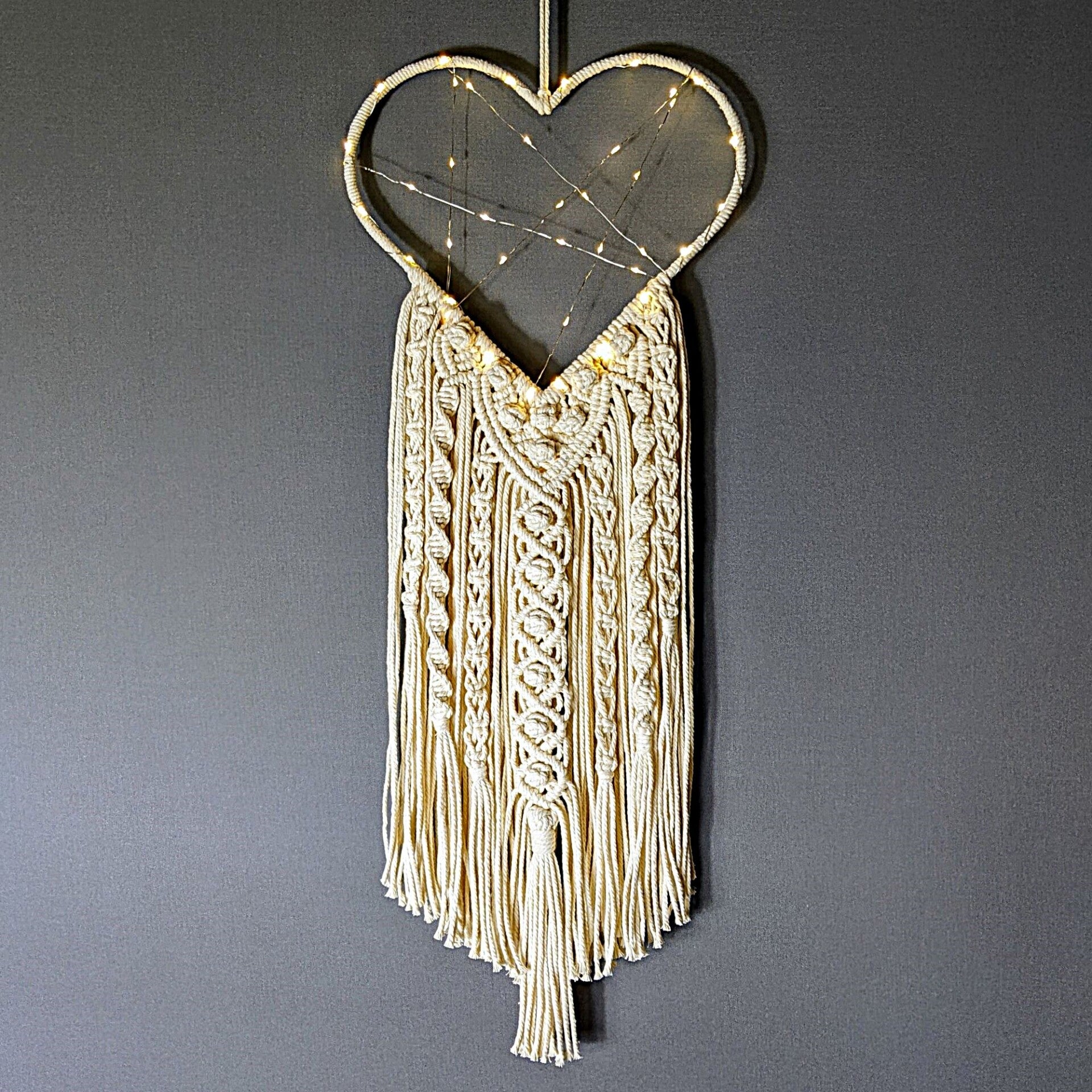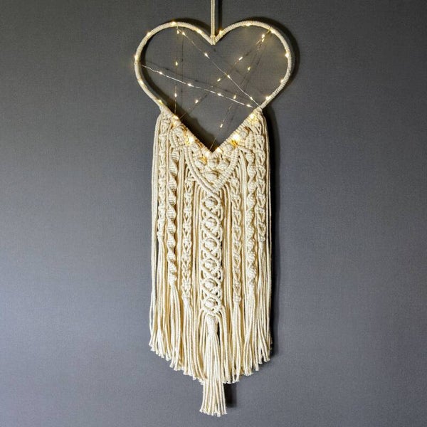 Makramee Herz Traumfänger mit Beleuchtung „Tina“