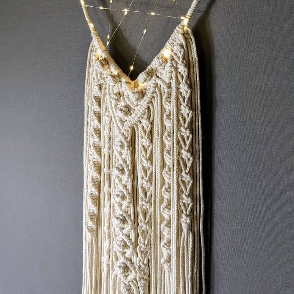 Jedes Makramee-Herz wird auf Bestellung sorgfältig von Hand geknüpft und in deiner Wunschfarbe gefertigt. Die zarten Makramee-Strukturen, kombiniert mit dem weichen Licht, machen „Tina“ zu einem besonderen Einzelstück mit persönlichem Charakter.