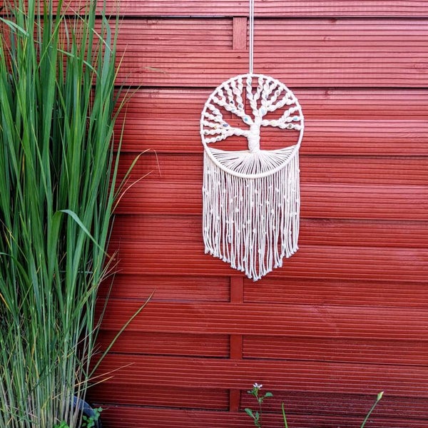 Der Makramee Wandbehang „Kai“ verbindet moderne Boho-Leichtigkeit mit der tiefen Bedeutung des Baums des Lebens. Er steht für Wachstum, Verbundenheit und neue Kraft und bringt genau diese ruhige Energie in deine Wohnräume.
