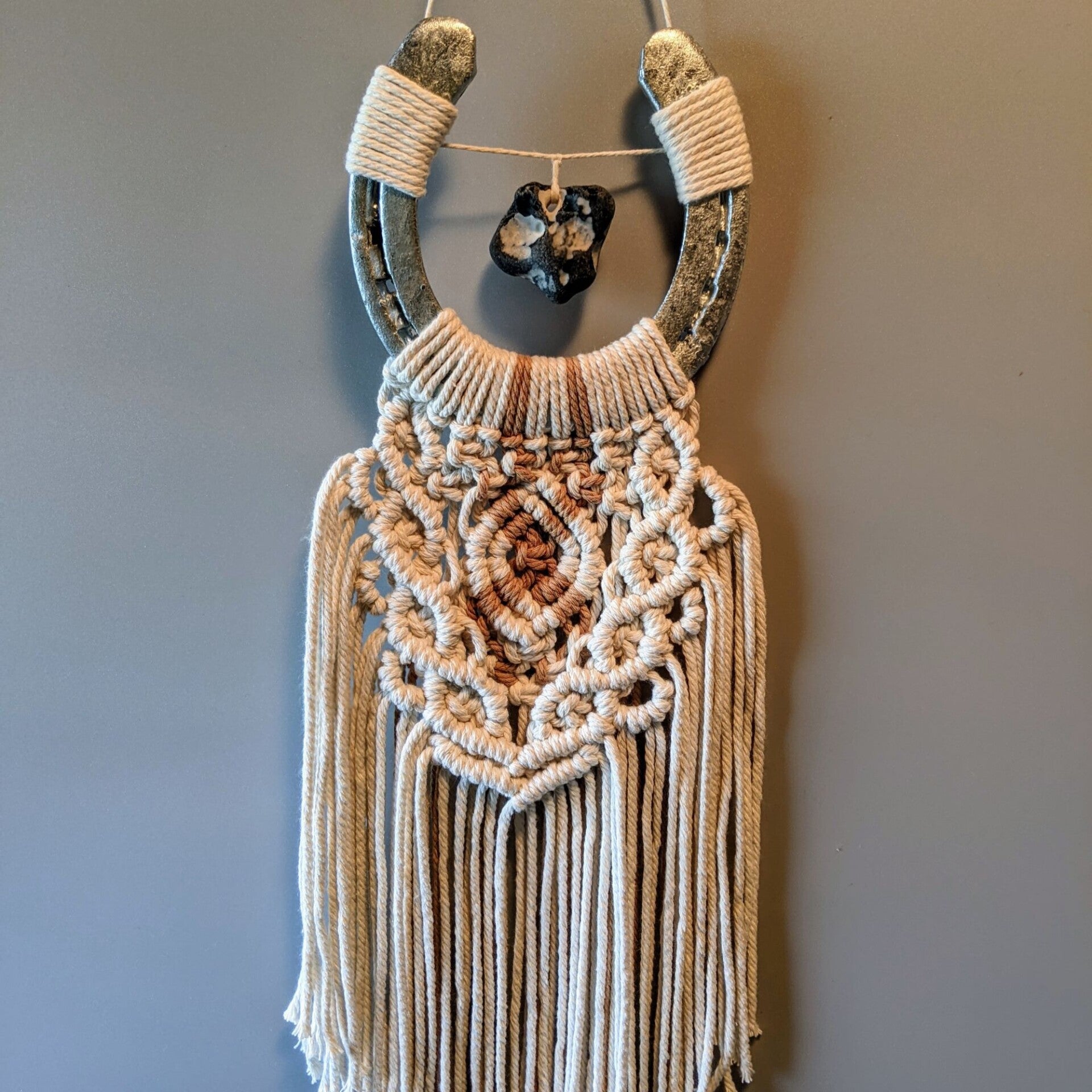 Hufeisen Makramee mit Hühnergott Vintage „Alissa“