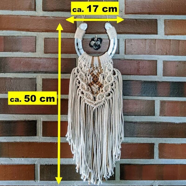 🌱 Materialien: 3 mm Baumwollgarn, feuerverzinktes originales Hufeisen, optional Hühnergott (Naturstein)
