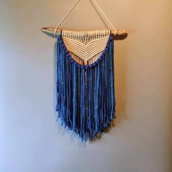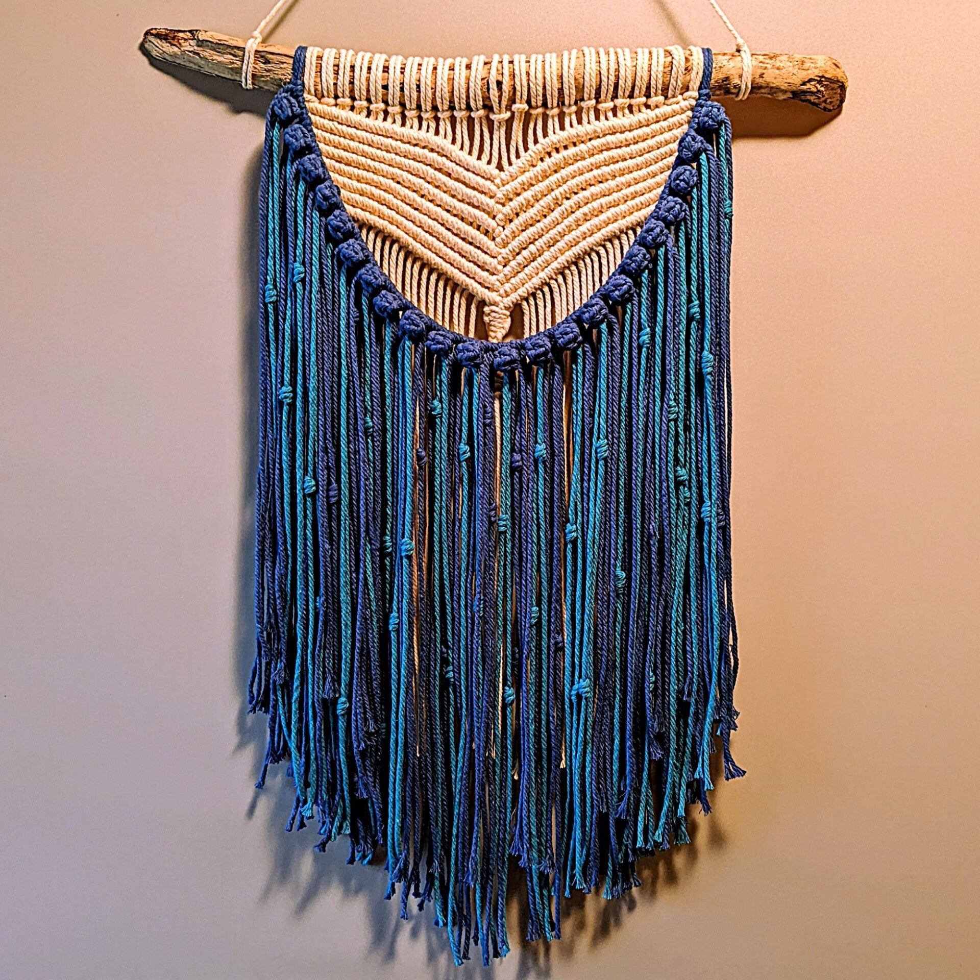Jeder Wandbehang entsteht in sorgfältiger Handarbeit aus Baumwollgarn. Das echte Treibholz macht jedes Stück einzigartig und unterstreicht den natürlichen, zeitlosen Charakter dieser besonderen Wanddeko.