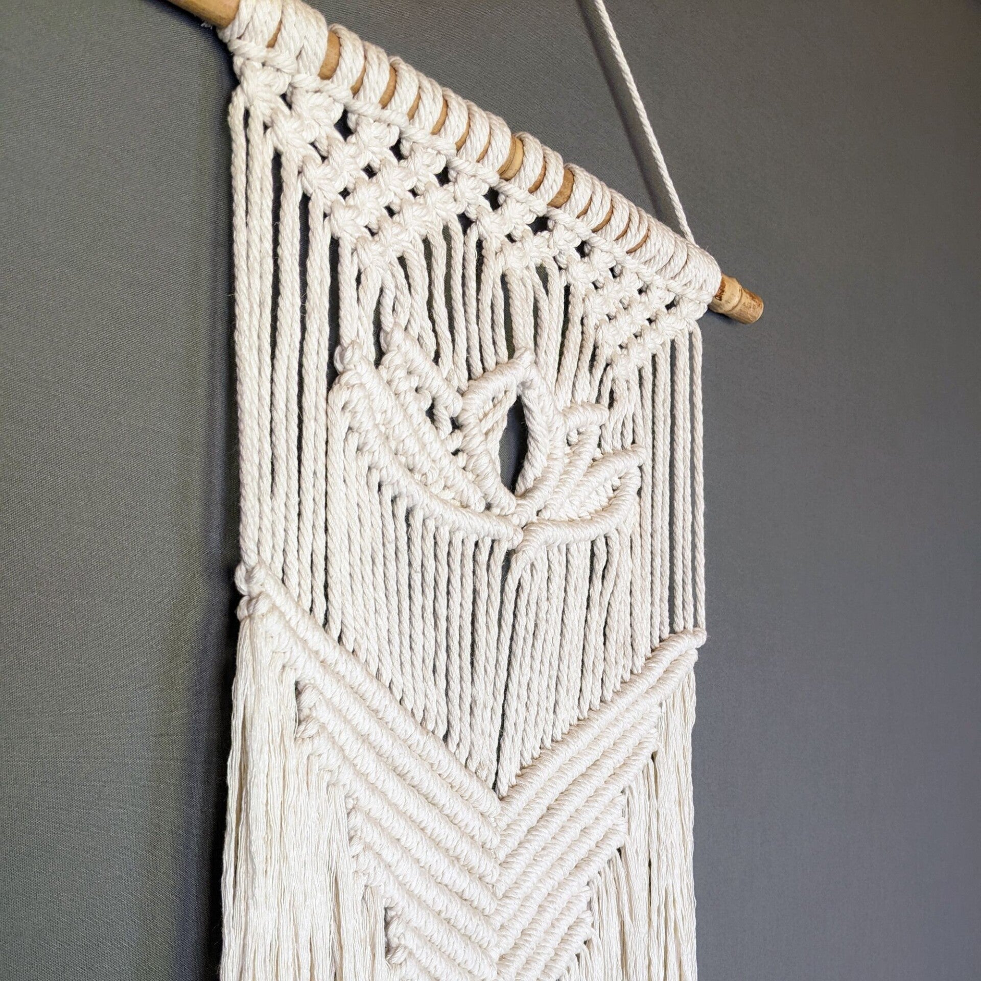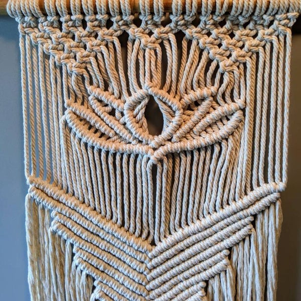 Der Lotos Makramee Wandbehang „Anjala“ bringt eine stille, ausgleichende Präsenz in dein Zuhause. Die handgeknüpfte Lotosform entsteht ausschließlich durch die Knotentechnik und steht für Harmonie, Klarheit und Neubeginn - ruhig, zeitlos und natürlich.