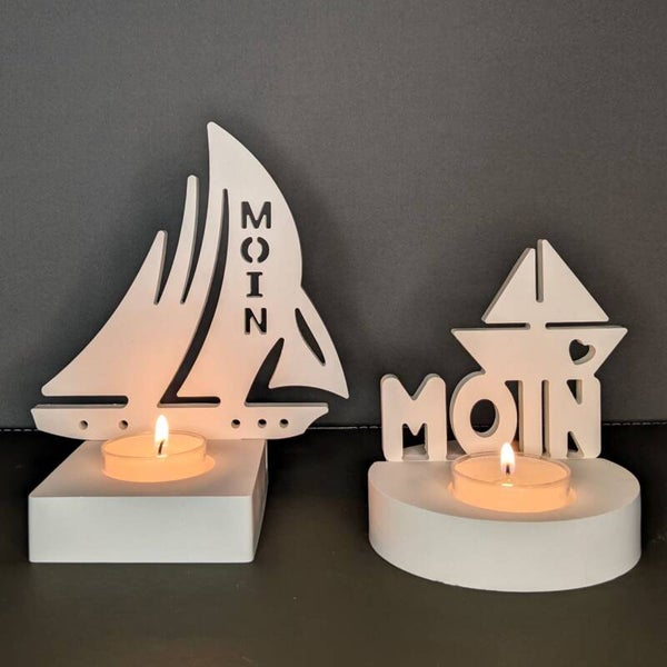 Dank des praktischen Einschieberprinzips lassen sich Segelschiff und Kerzenhalter frei kombinieren. Du kannst zwischen rundem oder eckigem Teelichthalter sowie einem Stabkerzenhalter wählen - jeweils mit kleinem oder großem Segelschiff. So entsteht genau die maritime Deko, die zu deinem Zuhause passt.