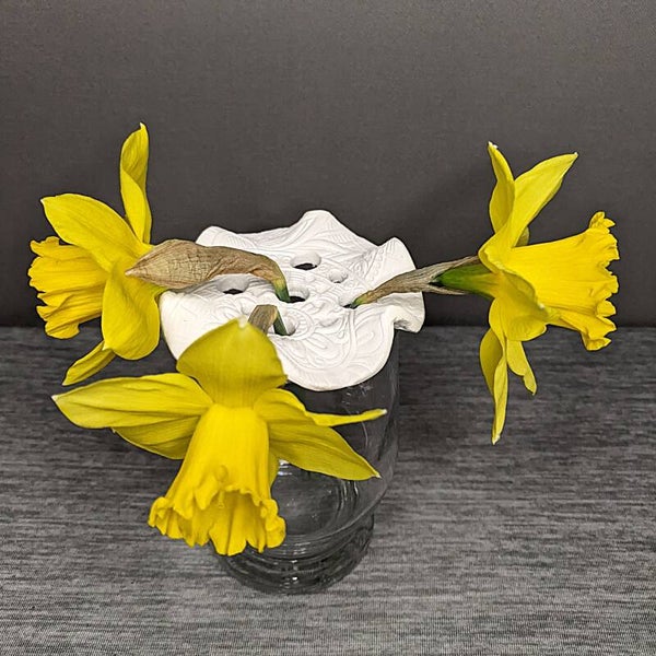 Der Blumenstecker „Viola“ hilft einzelnen Blüten, Gräsern oder feinen Wiesenfunden ihren Platz zu finden - ruhig, schlicht und dekorativ. Durch die beidseitige Prägung aus Modelliermasse gibt es kein Vorne und Hinten: Die Steckhilfe wirkt aus jedem Blickwinkel harmonisch im Glas oder in der Vase.