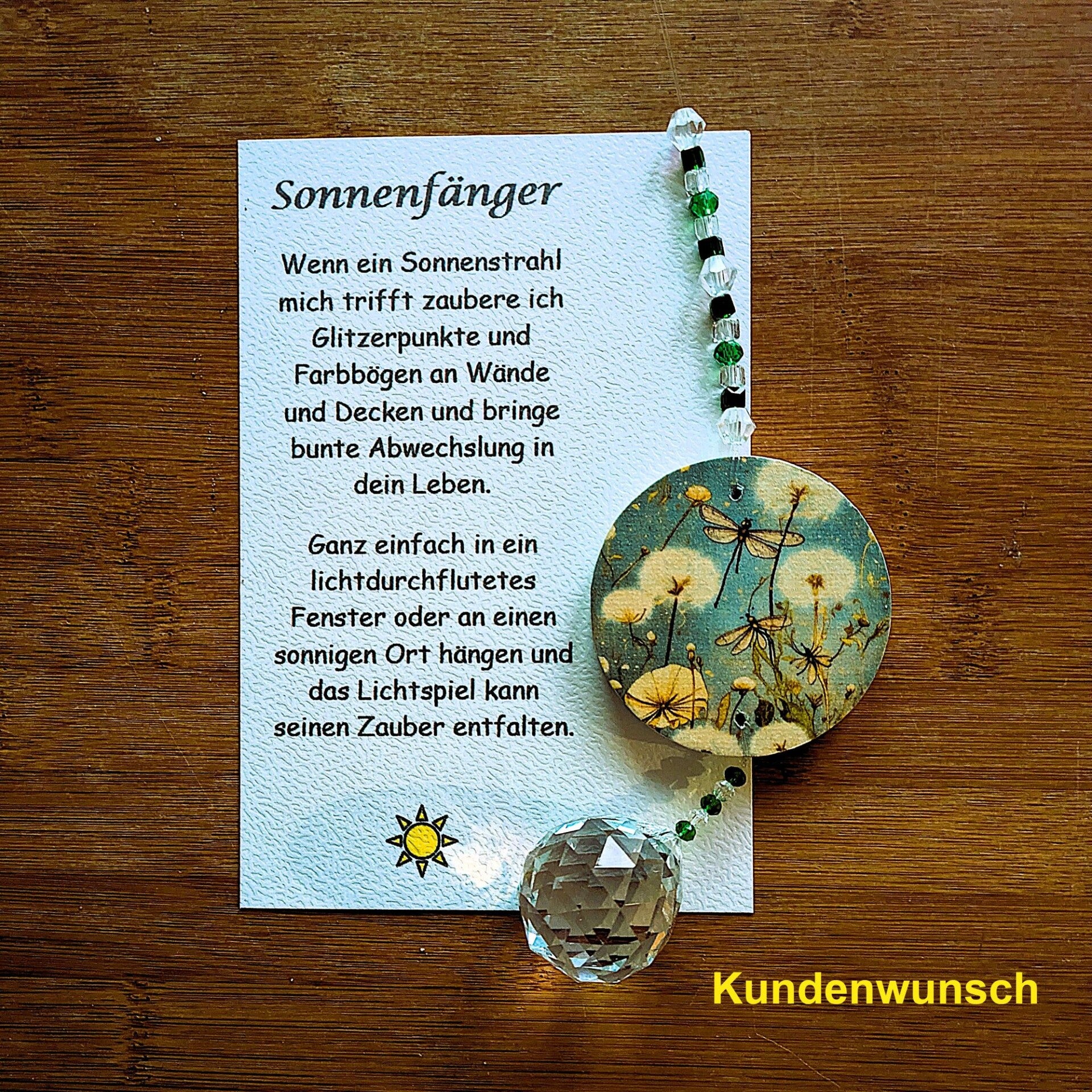 Sonnenfänger „Maira“ – Handgefertigte Fensterdeko mit Kristall & Motiv