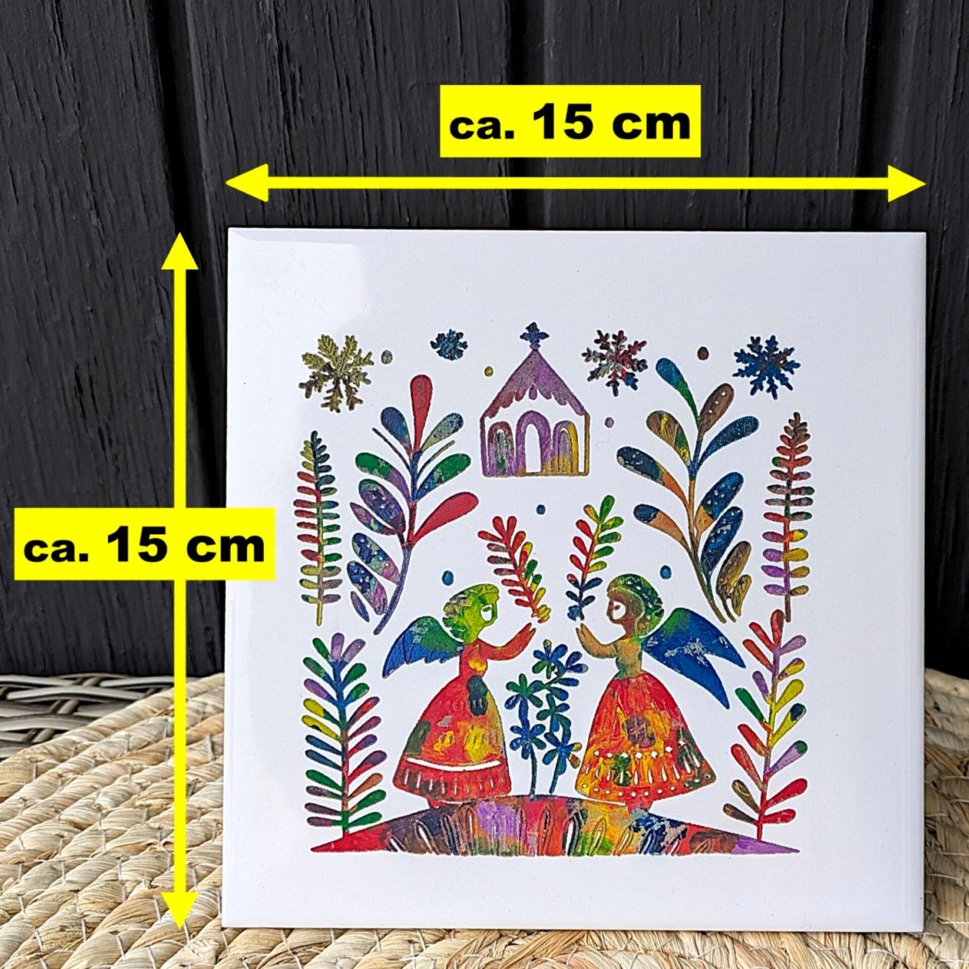 📏 Maße: Fliese ca. 15 × 15 cm; mit Rahmen ca. 17,5 × 17,5 cm