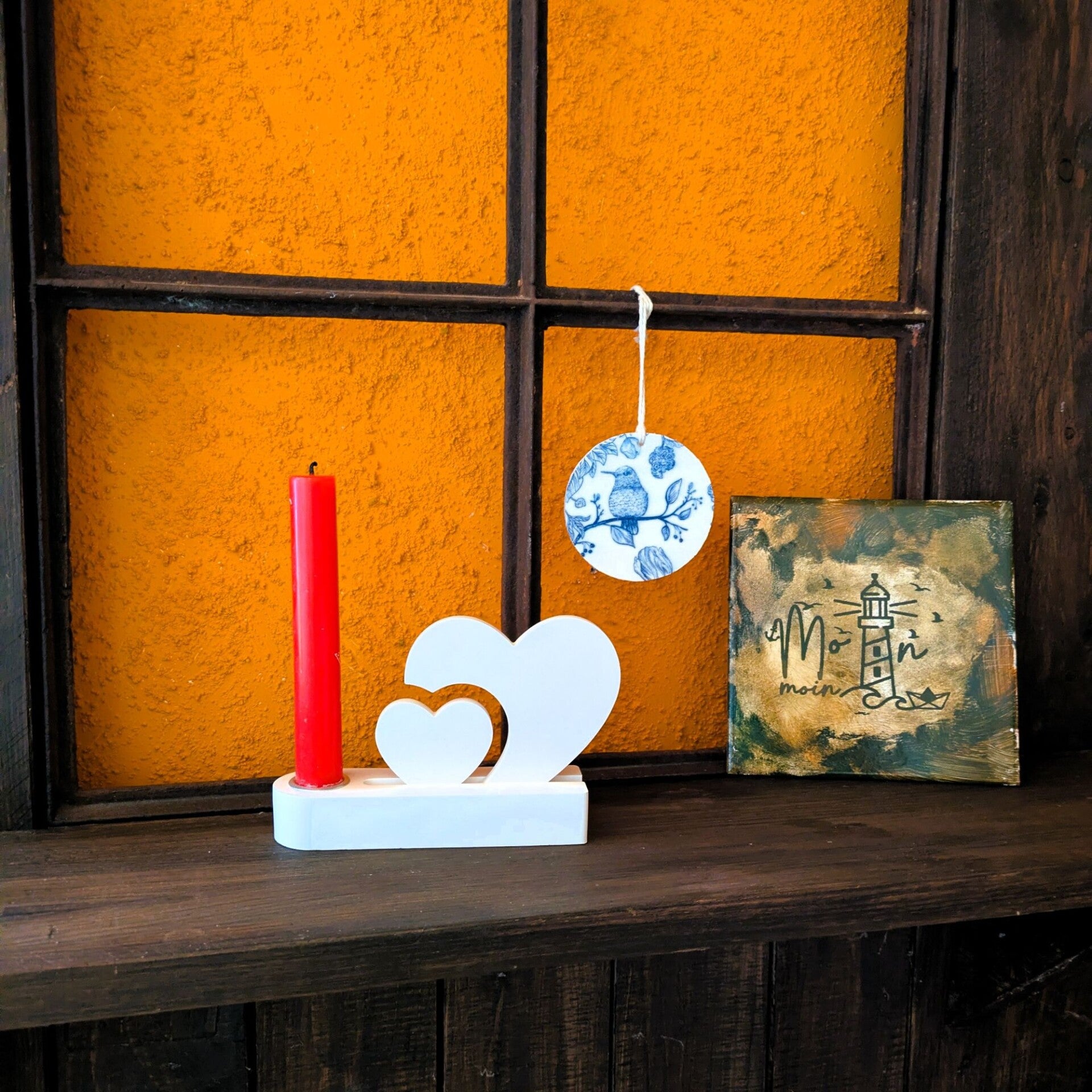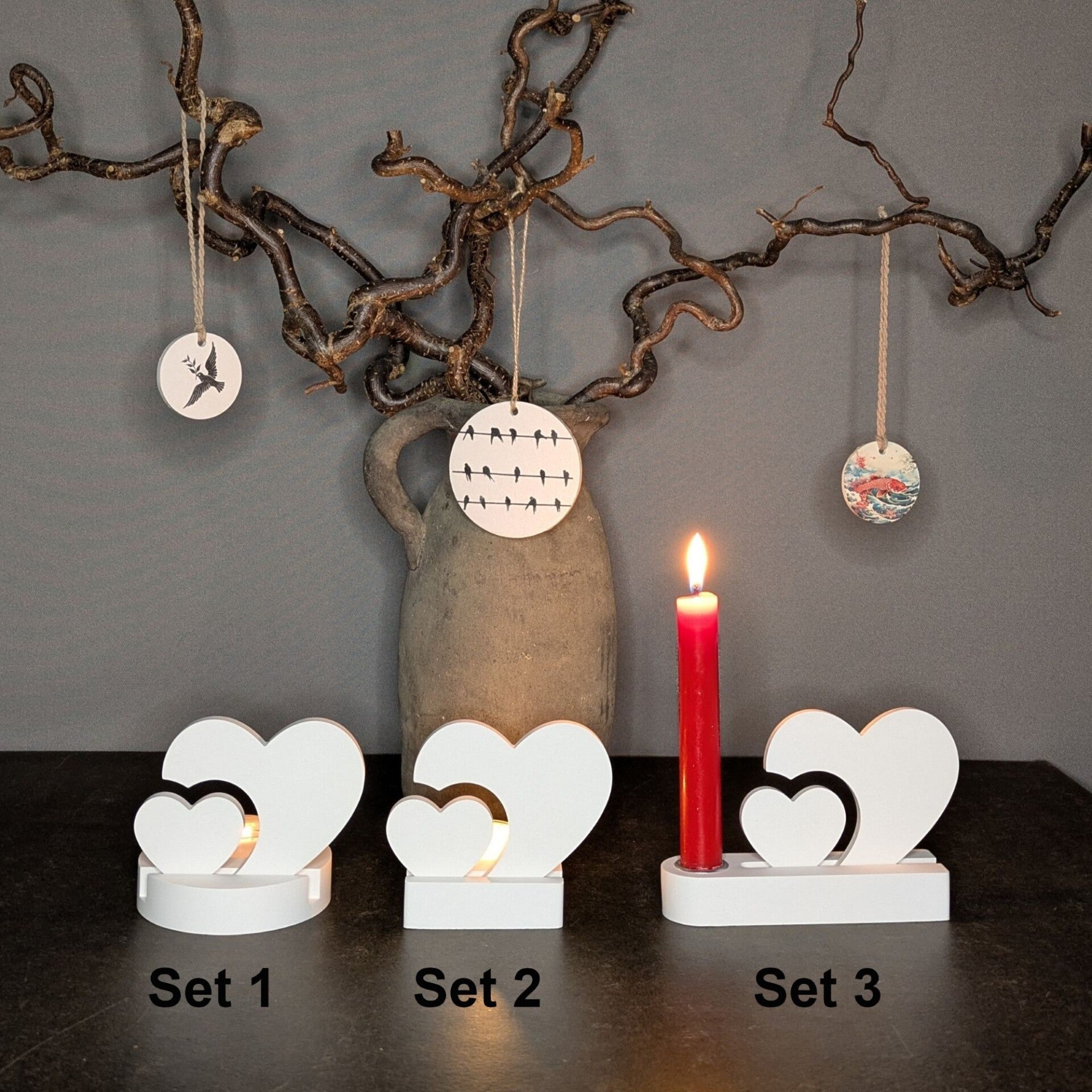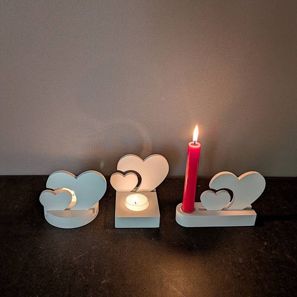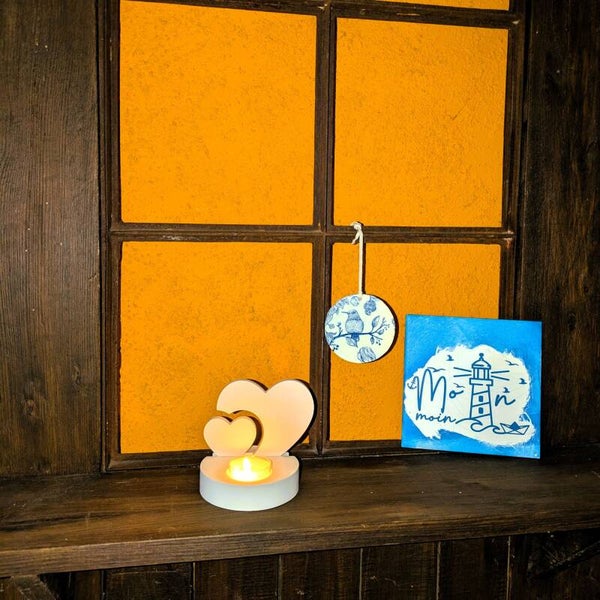 Dank des bewährten Einschieberprinzips lassen sich Motiv und Kerzenhalter flexibel kombinieren. Wähle zwischen rundem oder eckigem Teelichthalter oder einem passenden Stabkerzenhalter. Herz und Halter sind auch einzeln erhältlich und mit weiteren Motiven aus meinem Shop kombinierbar. Ein Beispiel dafür siehst du auf dem letzten Foto.