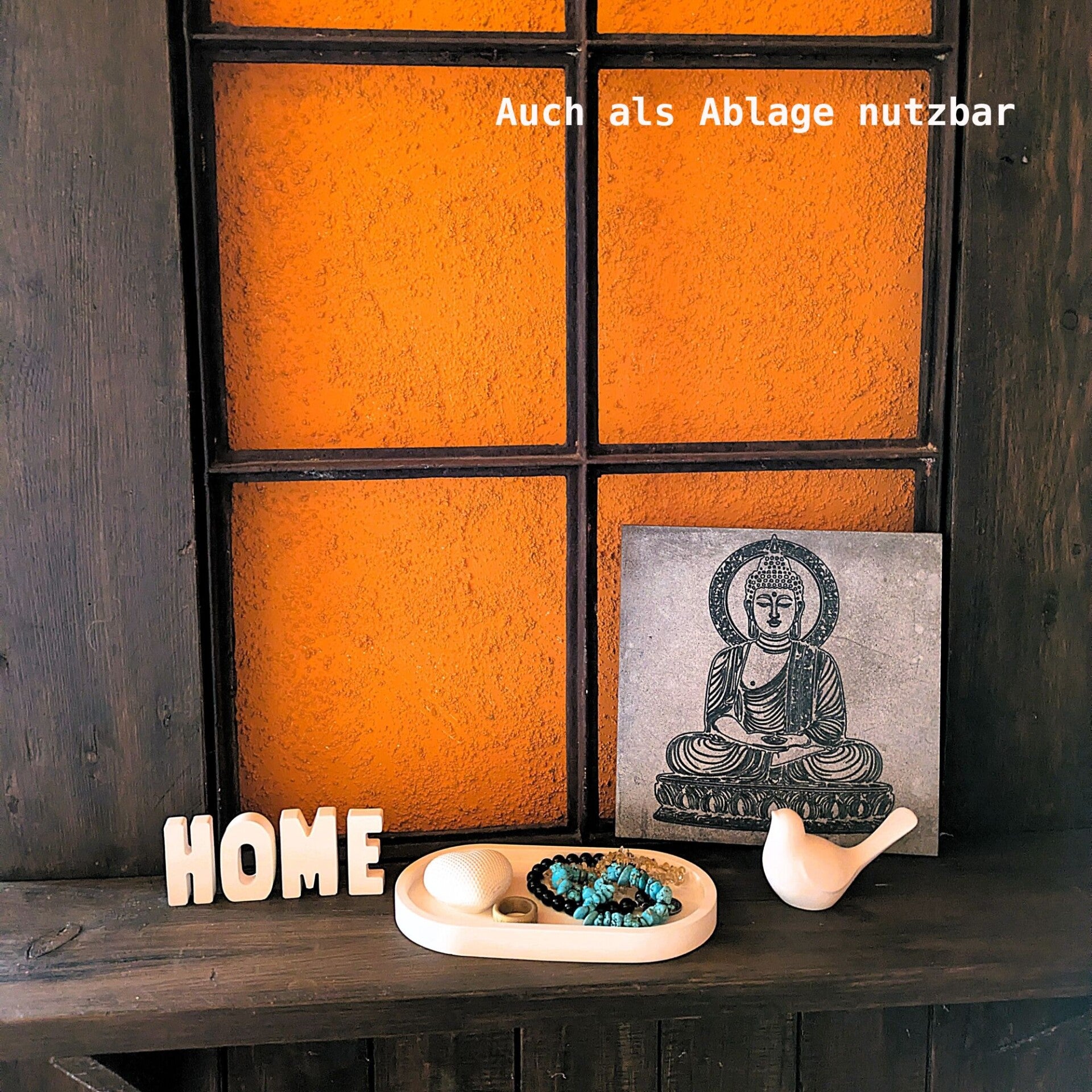 Die Buchstaben werden nicht auf dem Tablett befestigt, sondern einfach aufgestellt. Dadurch kannst du dein Arrangement jederzeit verändern, neu kombinieren oder auch ganz anders nutzen - etwa als kleine Ablage für Schmuck, Schlüssel oder andere Lieblingsstücke.