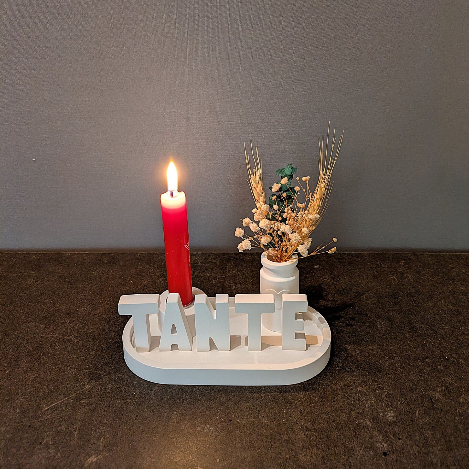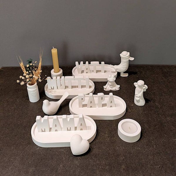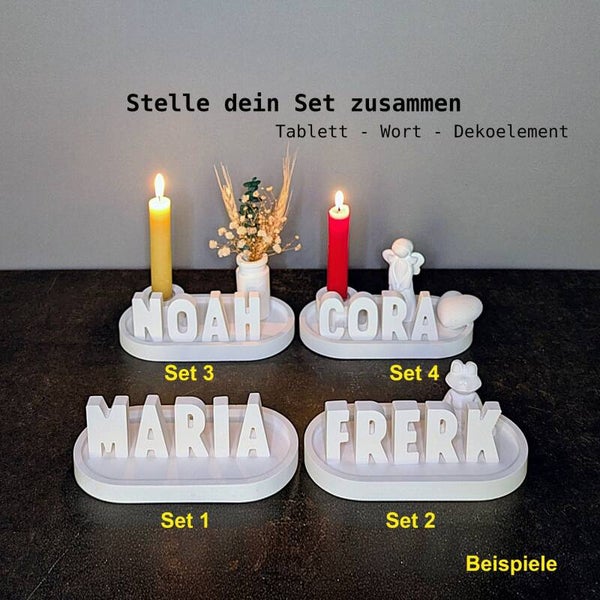 Das Besondere: Du kannst dein Tablett mit einem Wunschwort aus bis zu fünf Buchstaben gestalten. Ob ein Name, ein Gefühl oder ein kurzer Gruß - schon wenige Buchstaben können viel ausdrücken. Beispiele wie ELIAS, HOME, MOIN, YOGA oder LIEBE zeigen, wie vielseitig diese kleine Dekoszene sein kann.