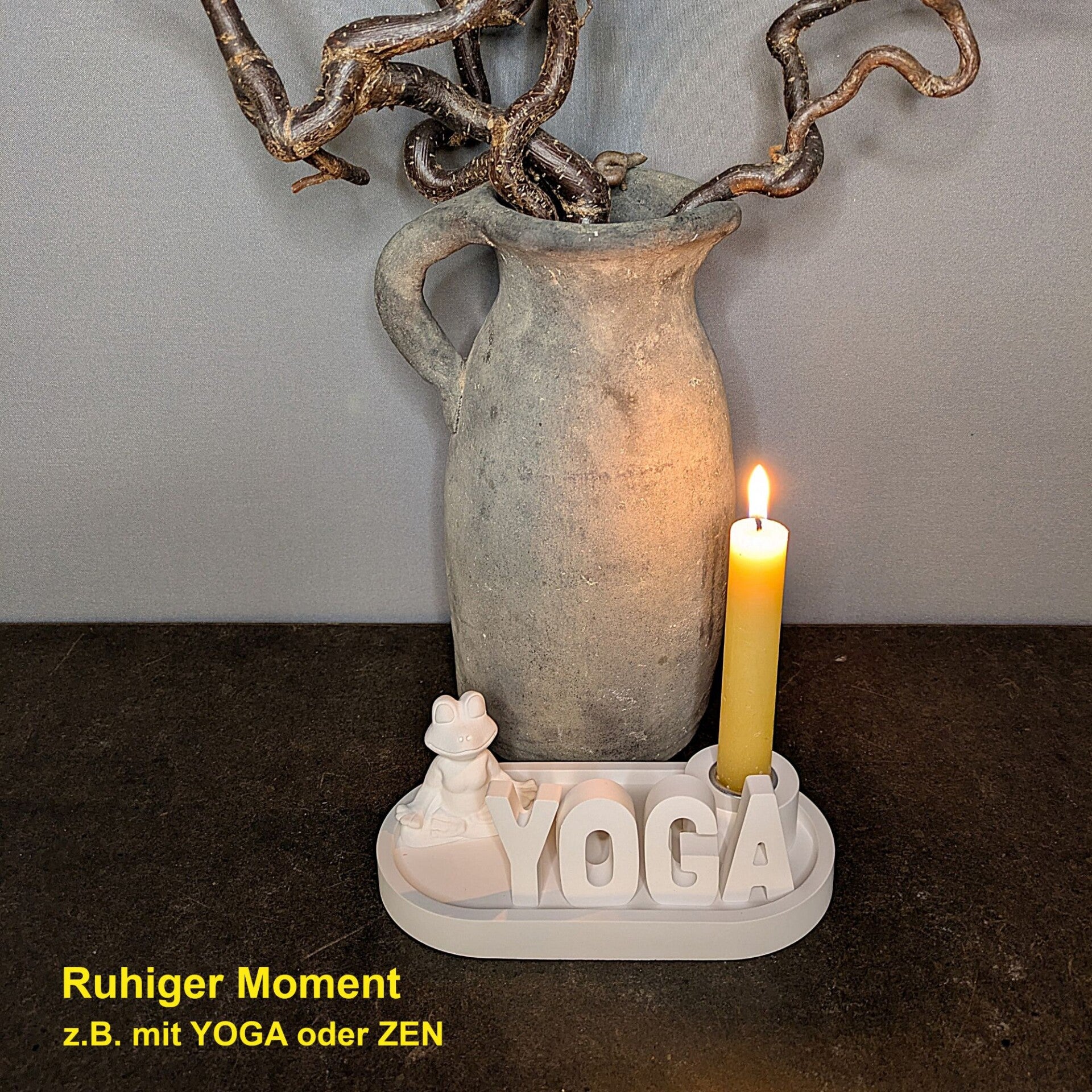 Ruhemoment - Ovales Tablett · Buchstaben (max. 5) · Yoga-Frosch · Stabkerzenhalter